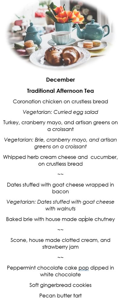 afternoon tea SUnday to THursday roast beef dinners every sunday